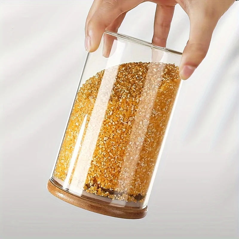Glass jar with bamboo lid 280ml 10oz glass food storage container, suitable for kitchen spice jars, coffee jars, dried fruit jar