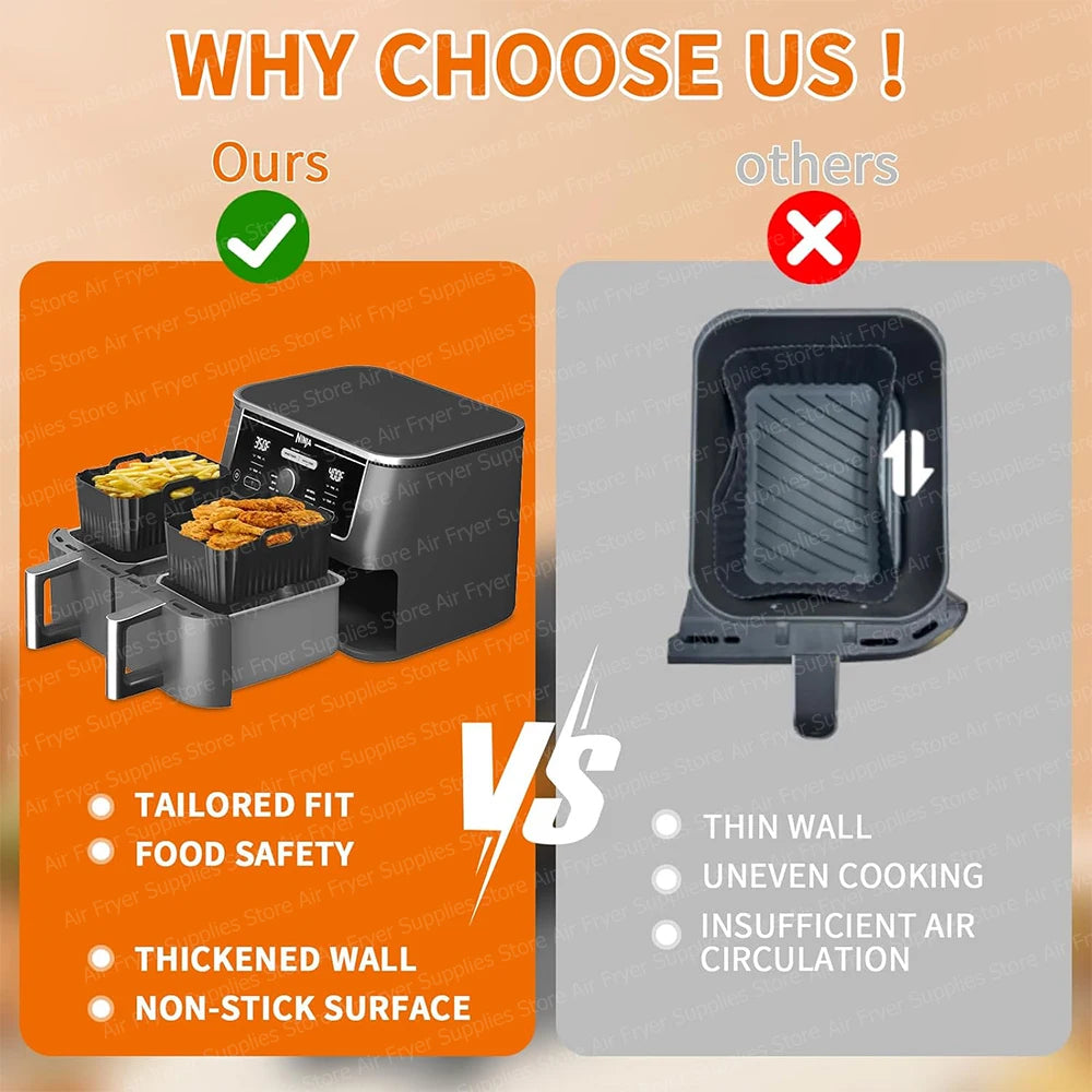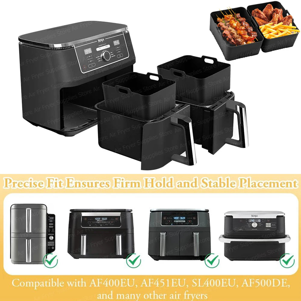 Silicone Air Fryer Liners for Ninja Foodi AF451 AF400 SL400 Reusable Baking Trays for Dual Zone 8.5-9.5L Airfryer Accessories