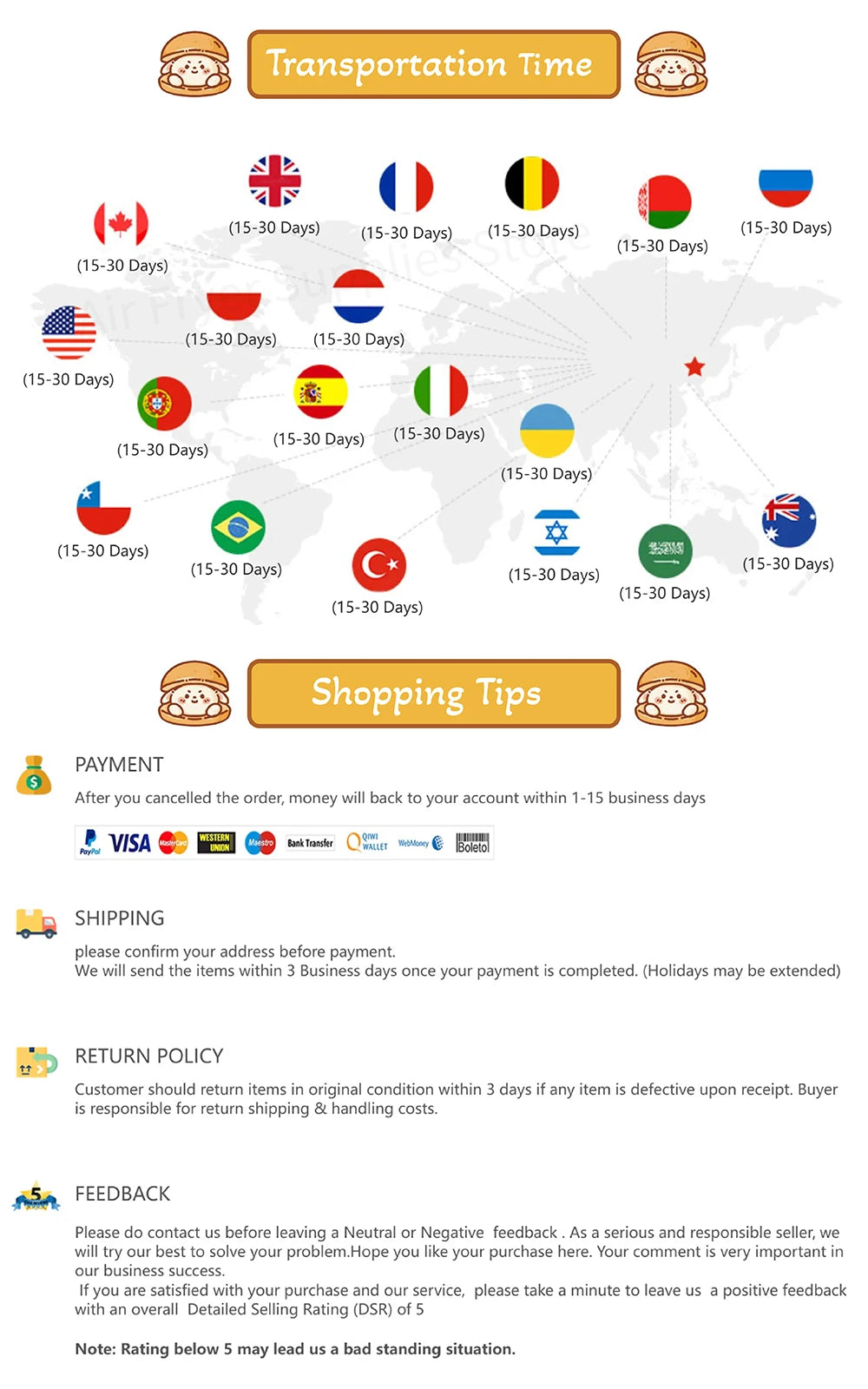 Customer is responsible for shipping charges when making returns and shipping/handling fees of original purchase is non-refundable.