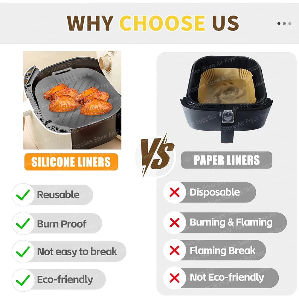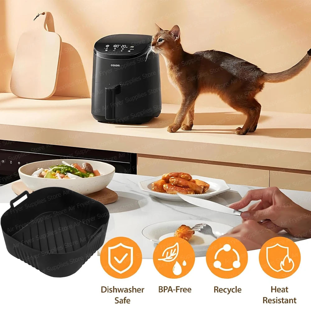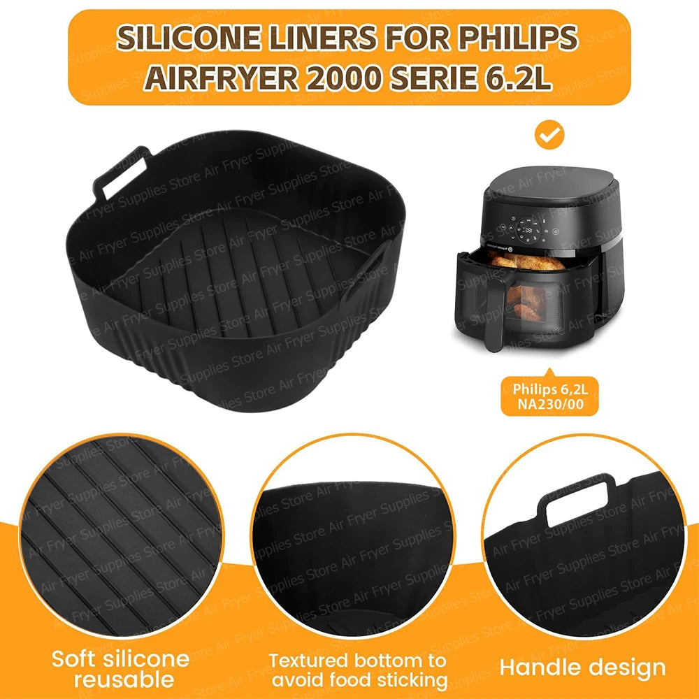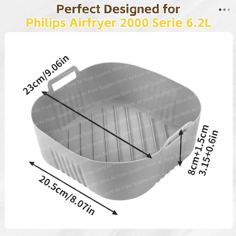 Square Air Fryer Mold for Philips Series 2000 6.2L NA230/00 Reusable Silicone Dish Basket for COSORI 5.5L/6L Airfryer Accessory