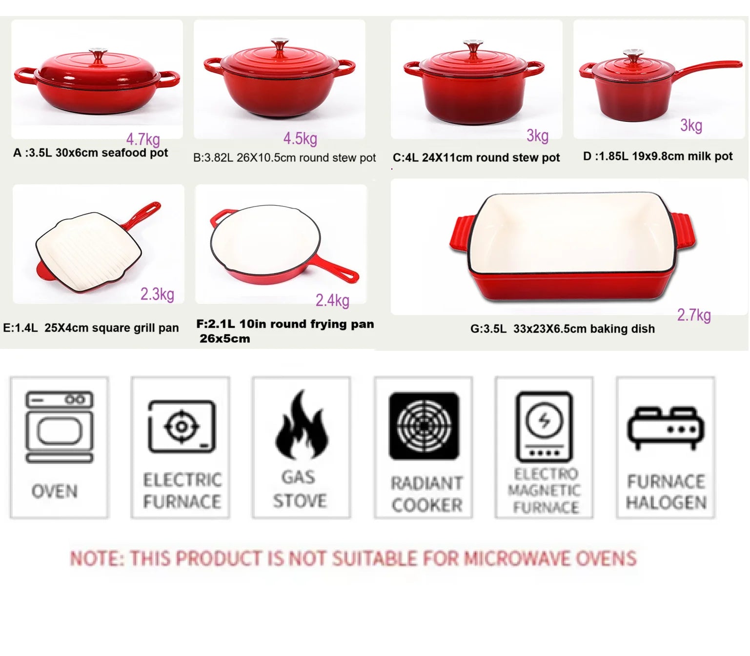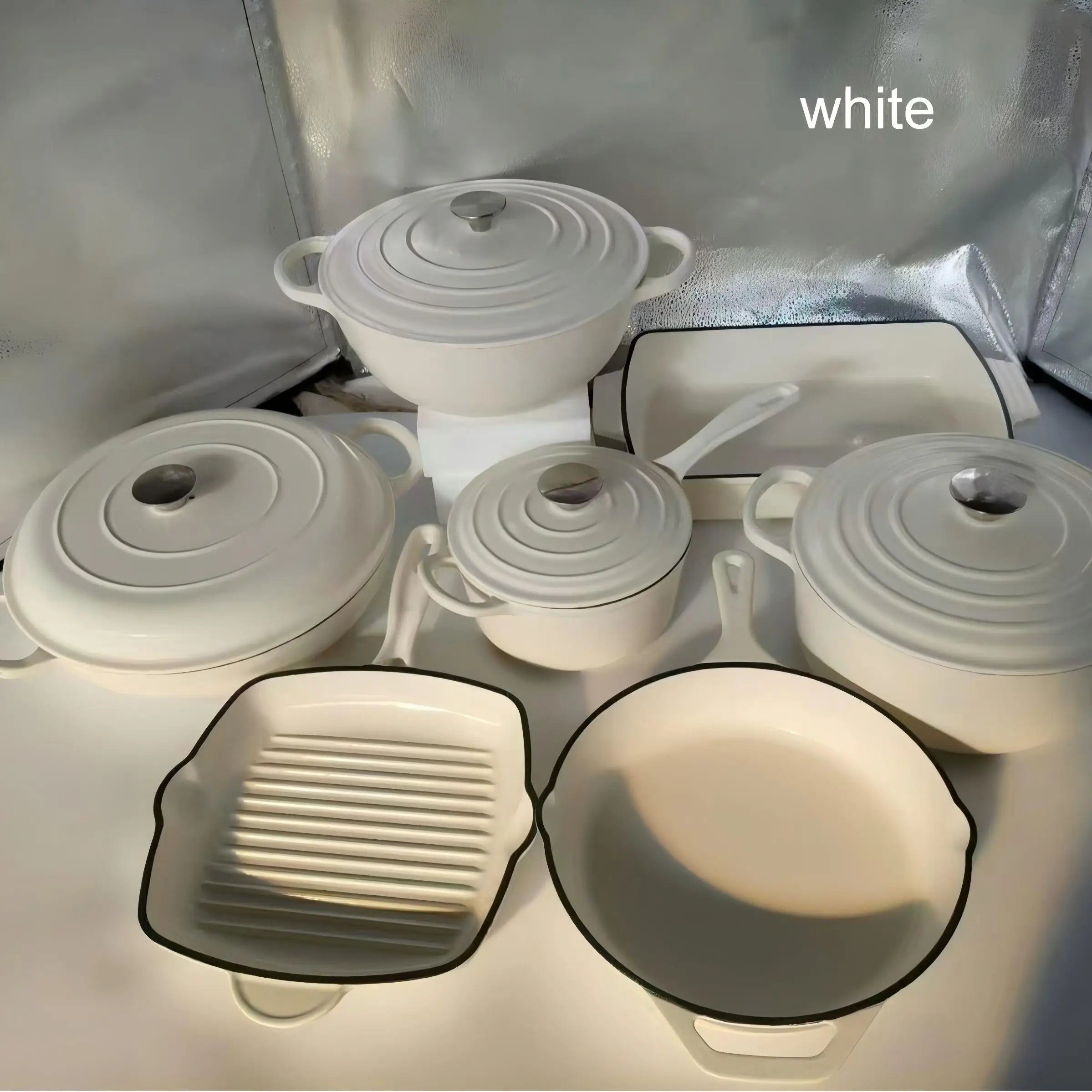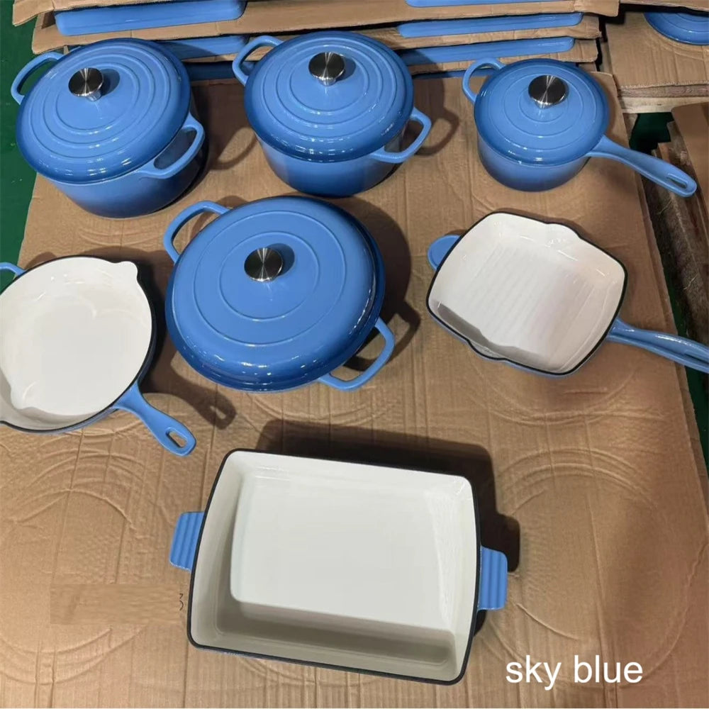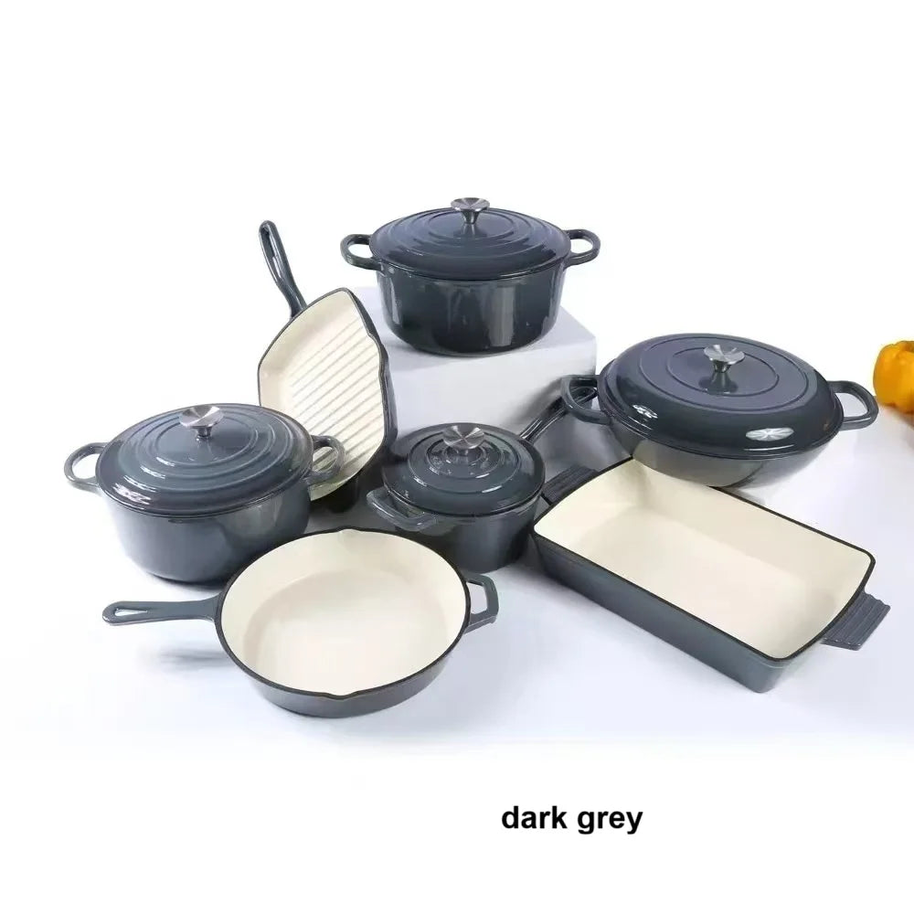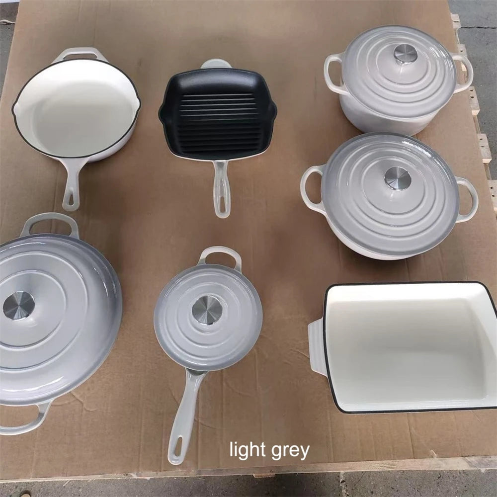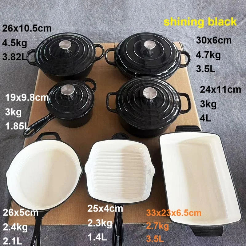 SPECIFICATIONSBrand Name: NONEFeature: Eco-Friendly,StockedHigh-concerned chemical: NoneOrigin: Mainland ChinaType: Cookware Sets If you are not in a hurry to receive your goods, please kindly provide us with your shipping address, and we will offer you the most cost-effective delivery option.Material: Cast Iron +Enamel CoatingThe inner surface: White Or Matt Black EnamelThe...