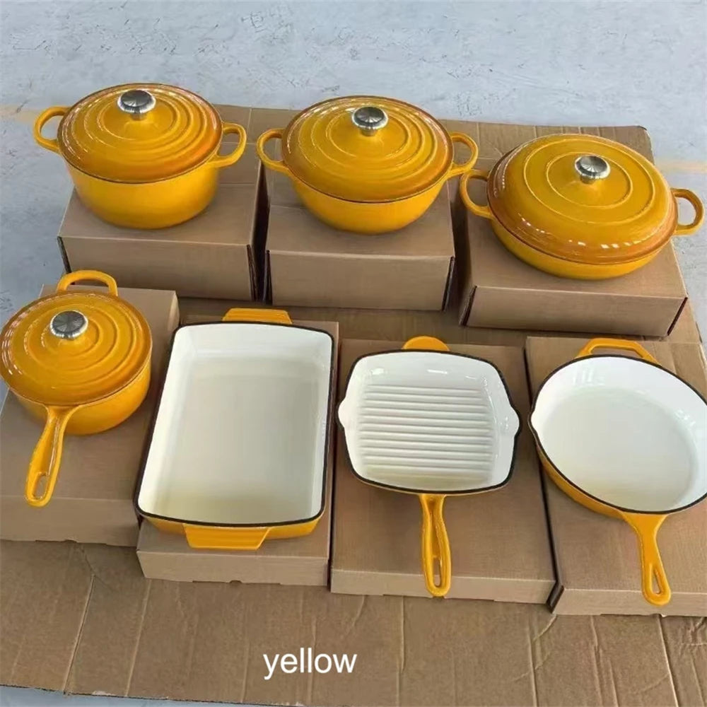 7 pcs/set Non Stick Enamel Cast Iron Pot Set Fried pand steak pan baking pan tewpot set with colors are available Cookware Sets