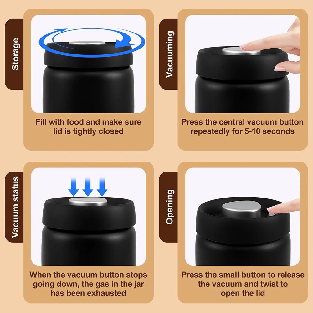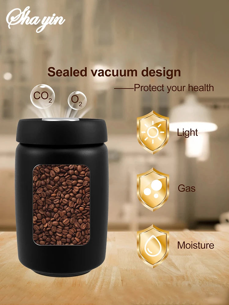 Coffee Beans Vacuum Sealed Jug 304 Stainless Steel Food Keep Fresh Storage Container Kitchen 1200ml Coffee Vacuum Canister