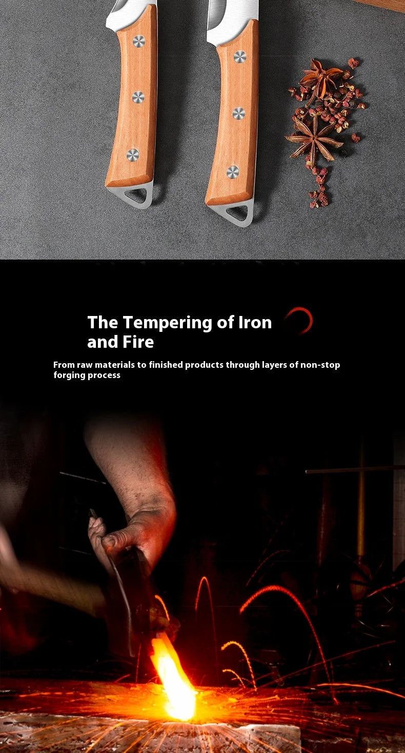 Stainless Steel Fillet Boning Knife Professional Chef's Kitchen Knife Forged Meat Cleaver Fish Slicing Knife Wooden Handle