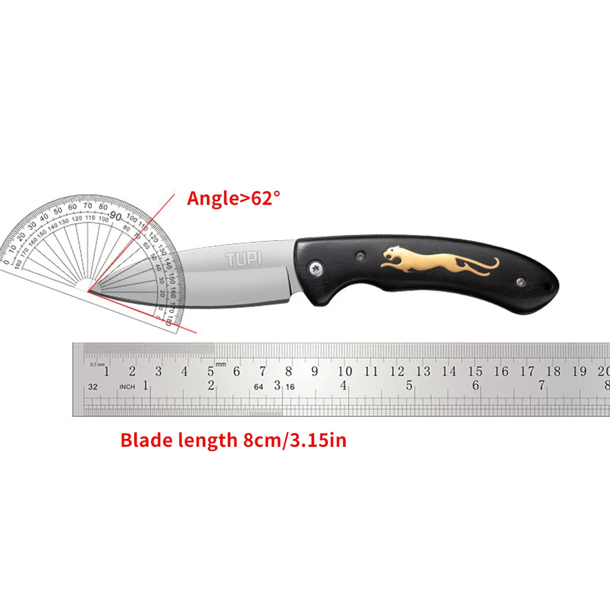 SPECIFICATIONSBlade Angle: >60°Blade Length: 8Blade Material: SteelBrand Name: TUPIChoice: yesFull Length: 18.5Handle Length: 10.5High-concerned chemical: NoneLock: NoOrigin: Mainland ChinaSharp Blade: YesSpring Force: Nosemi_Choice: yesProduct Description:Size: As Below Picture.Blade material: Hand forged stainless steel.Handle materrial: Black wood handle.Hardness: 62HRC.Blade thickness: 2.5mmBlade width: 25mmAbout this item:1.Premium Quality Steel: The knife made from high...