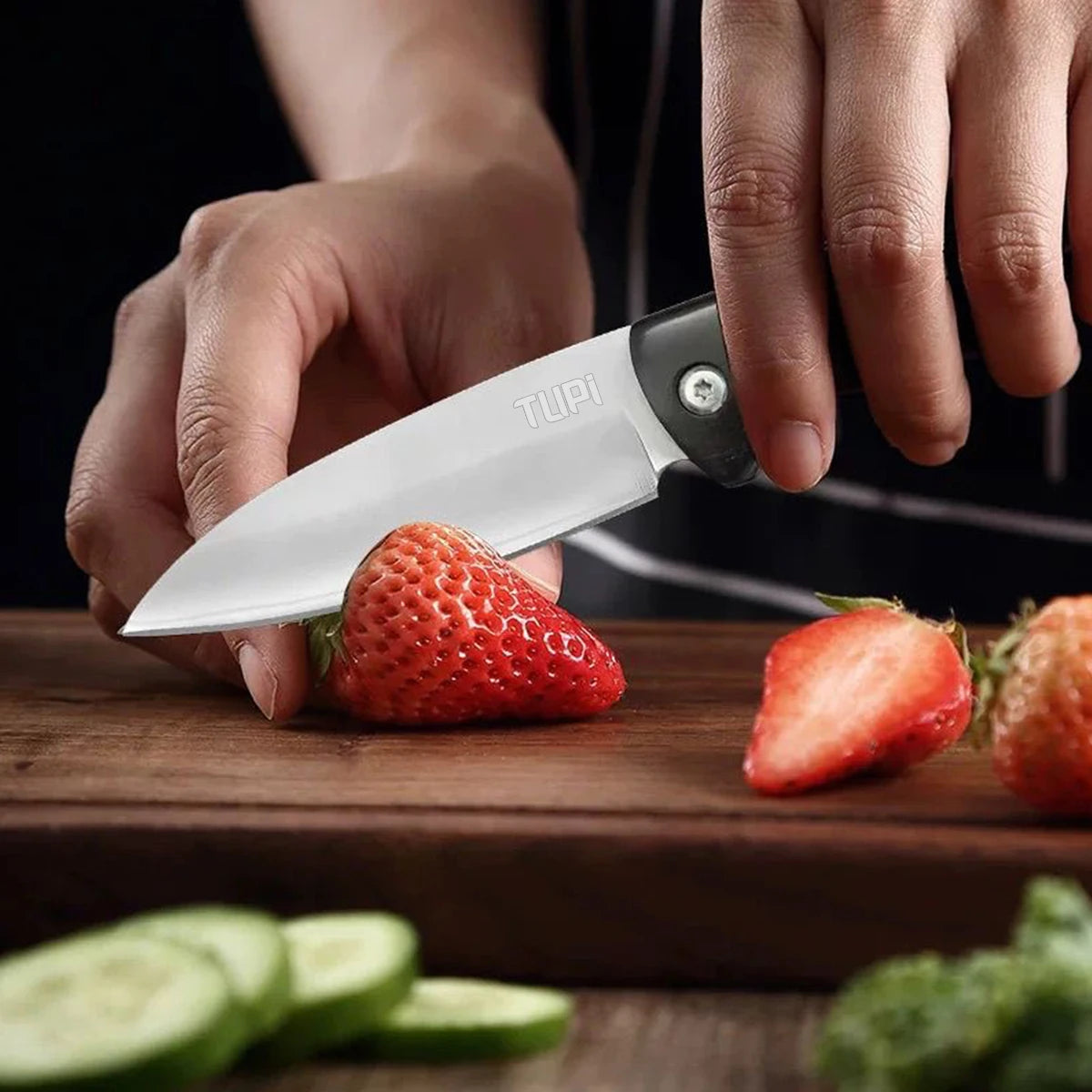 TUPI Folding Blade Knife Handmade Wood Handle Utility Knife for Slicing Meat BBQ Fruit Boning and Fish Filleting Kitchen Tool